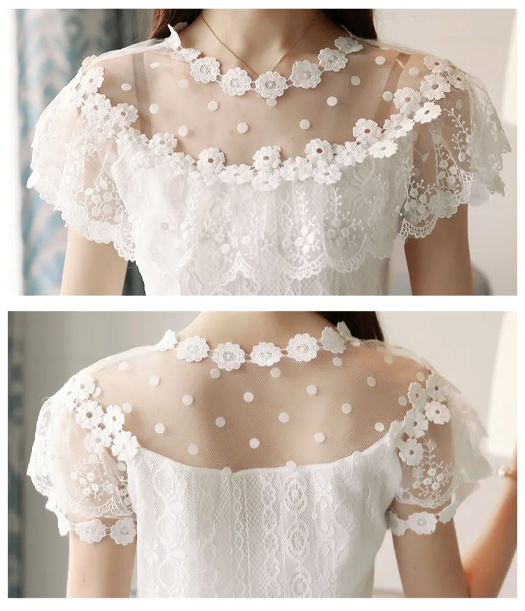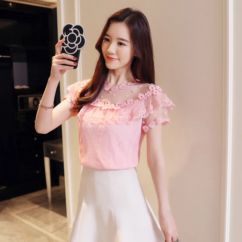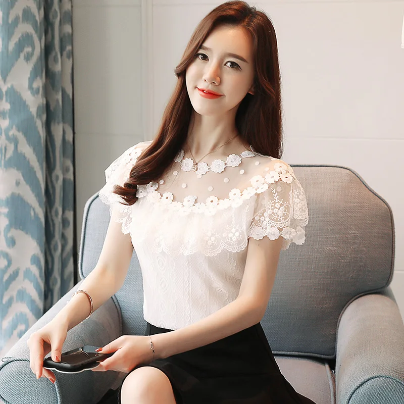 Best Sexy hollow lace women blouse shirt fashion 2019 new short sleeve summer women tops floral lace wom