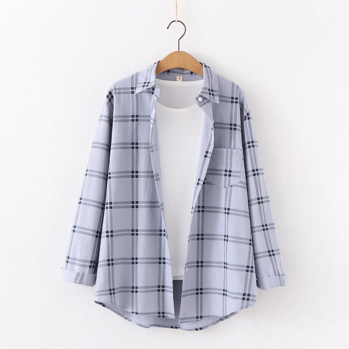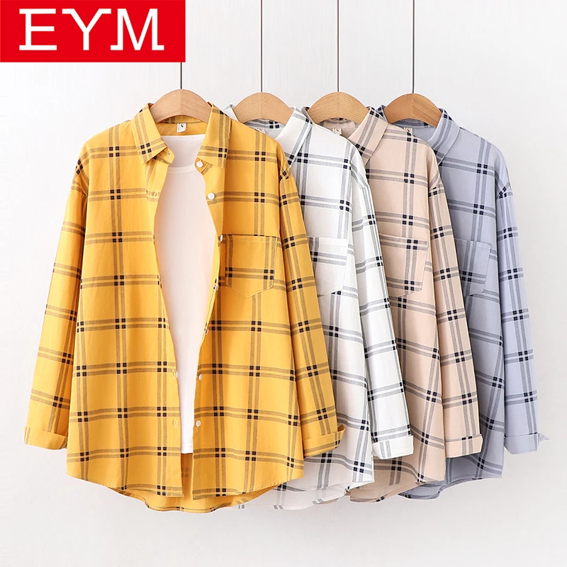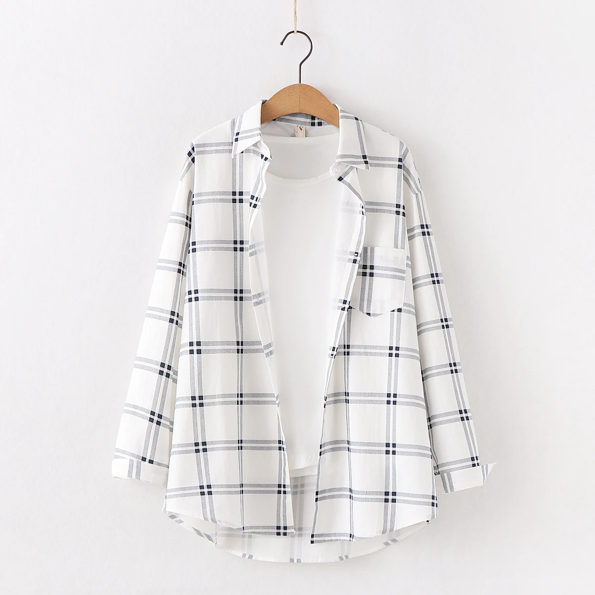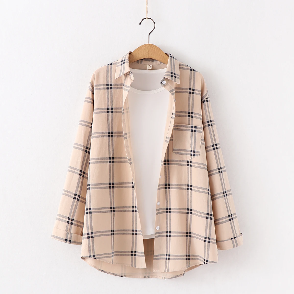 New Brand Cotton Plaid Shirt Women 2019 New Women Blouses Good Quality Loose Long Sleeve Casual Shirts