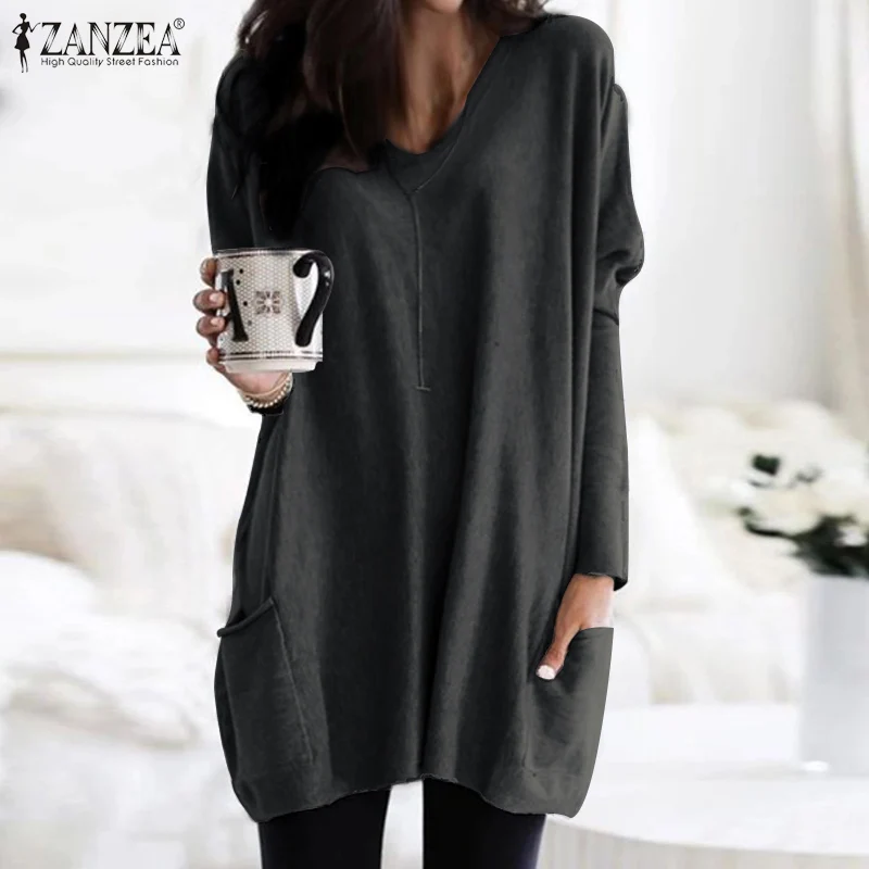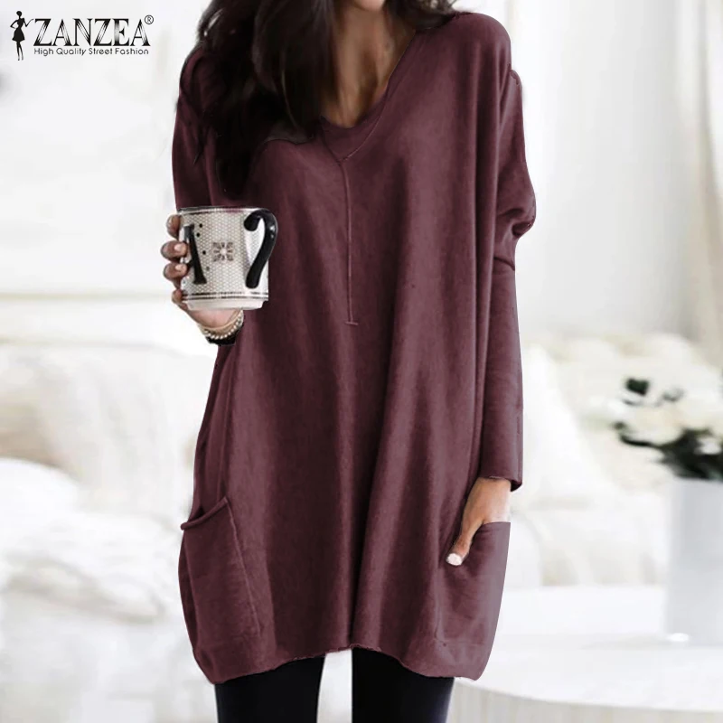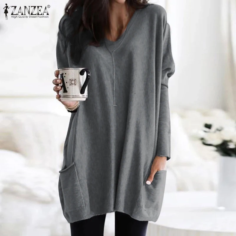 New ZANZEA Women Casual Solid Blouses 2019 New Fashion Female Solid Knitted Tops Shirts Autumn Long Sle