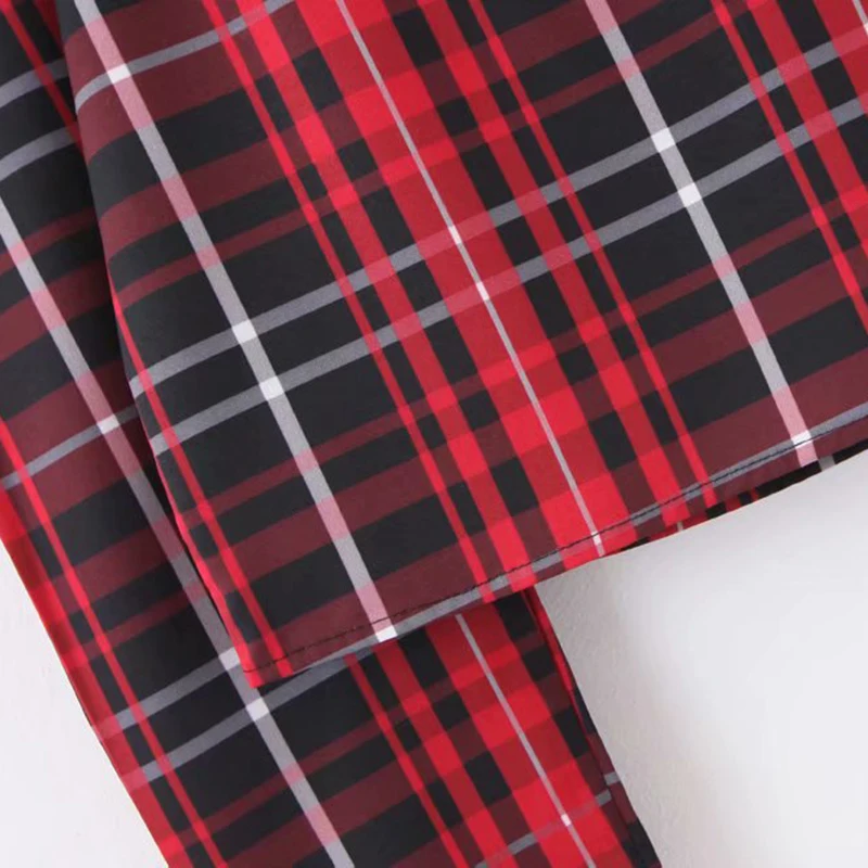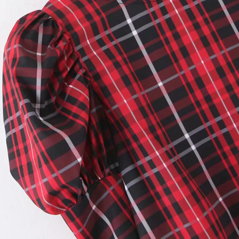 Promo Vintage Stylish Plaid Blouses Women 2019 Fashion O Neck Long Puff Sleeve Elegant Shirts Chic Tops B