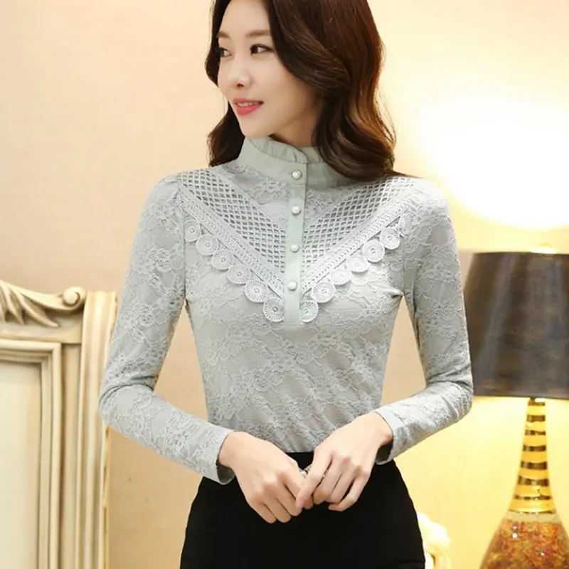 Promo SEXMKL Women Tops 2019 Fashion White Lace Blouse Autumn Long Sleeve Office Shirt Korean Hollow Out