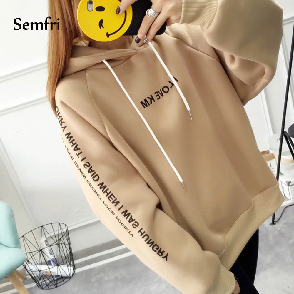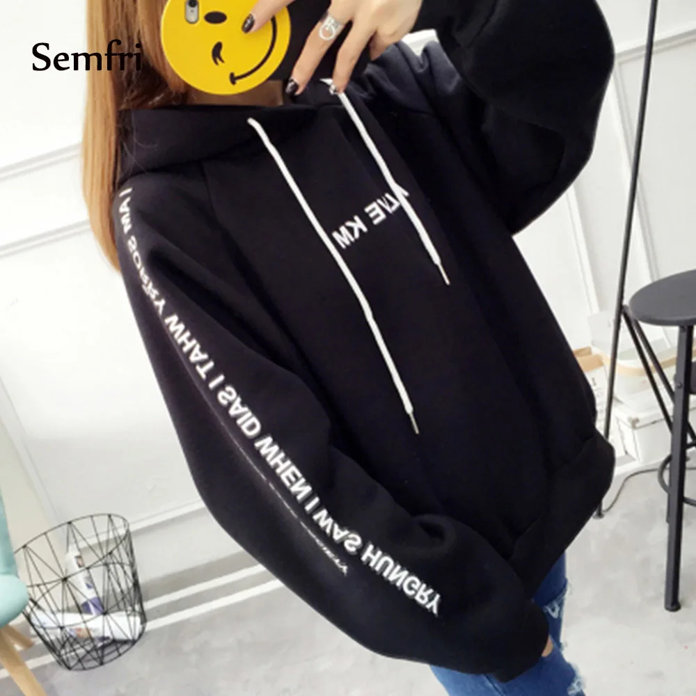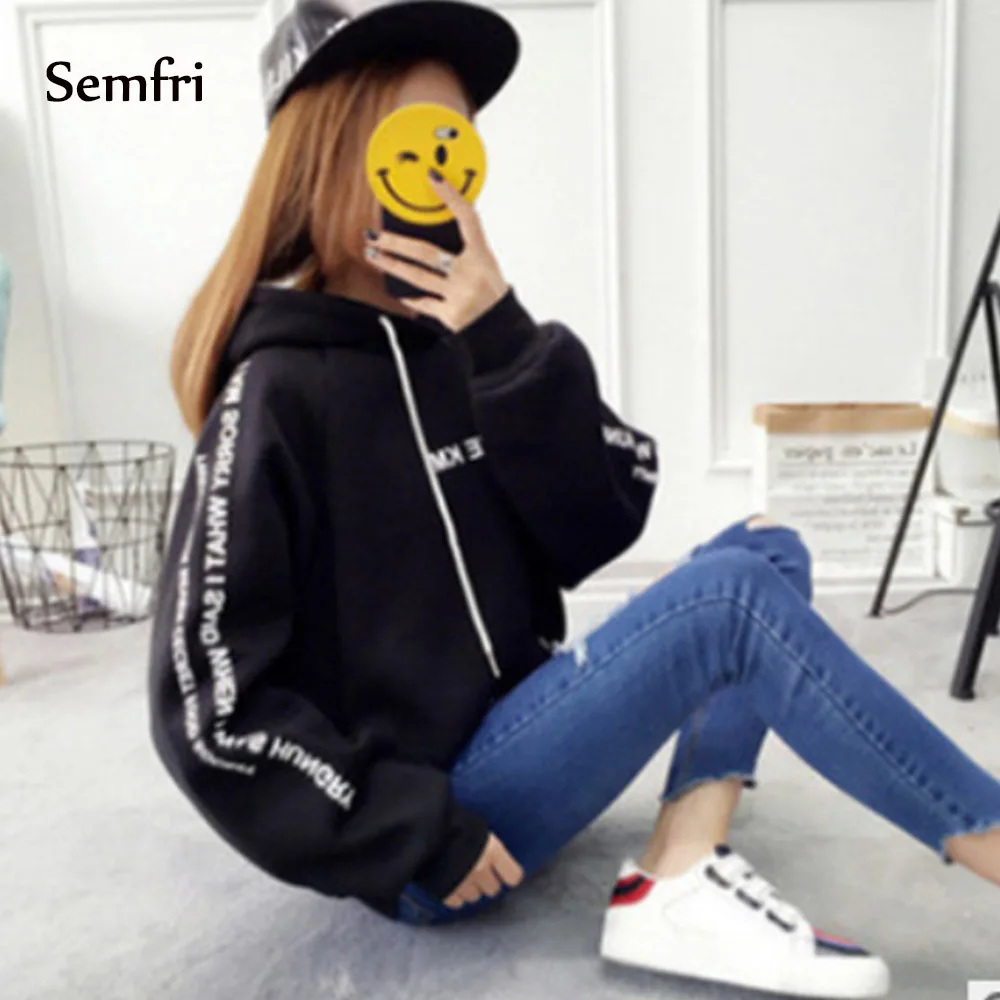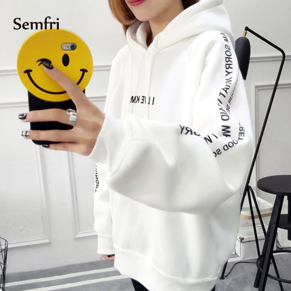 New Semfri Hoodies Women Letters Printed Casual Hoodies Sweatshirts Autumn Winter Pullover Loose Thicke
