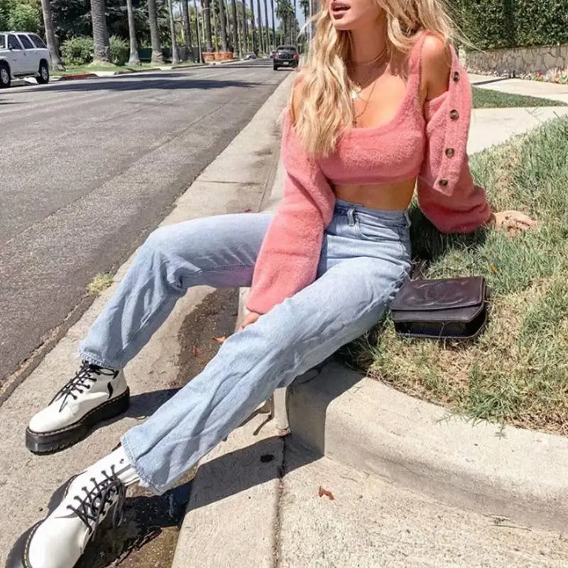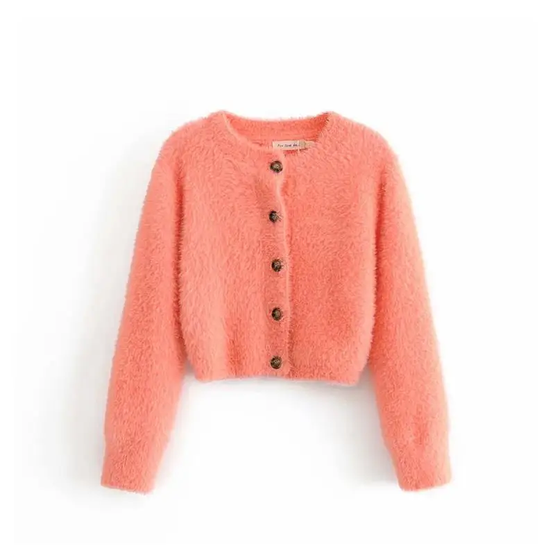 Buy Pink cropped cardigan womens sweaters 2019 crop sweater knitted button tops long sleeve v-neck shor