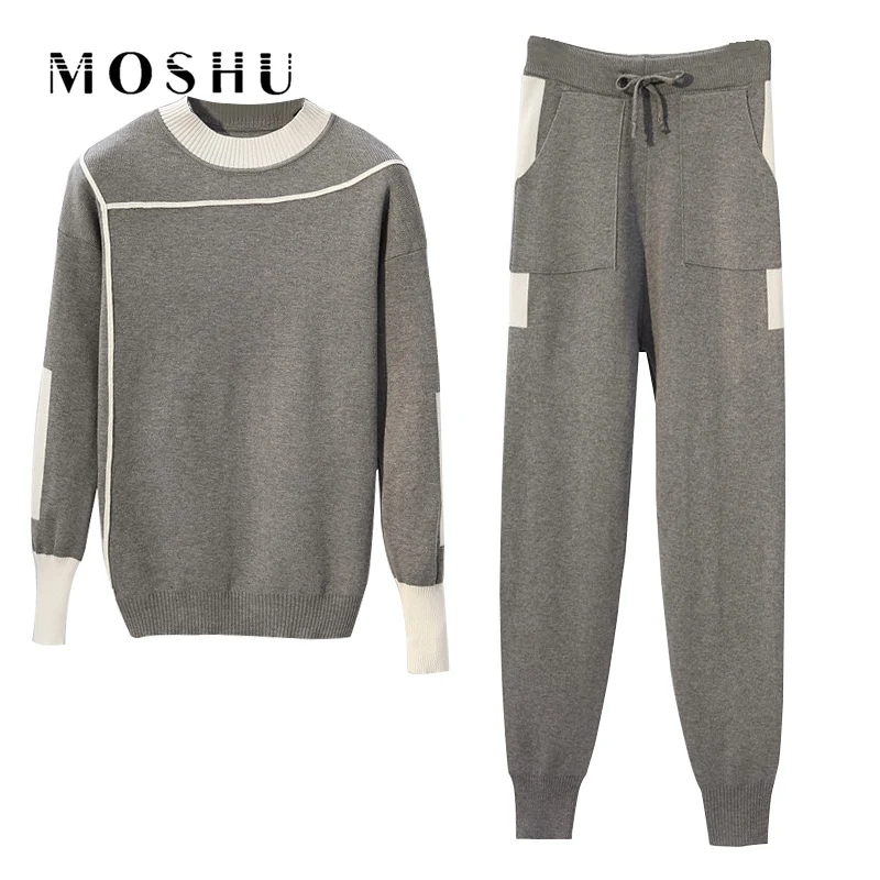 Best Suit Women 2 Pieces Set Tracksuits Knitted Pullovers Sweater Suits 2019 Plus Size Long Sleeve Femal